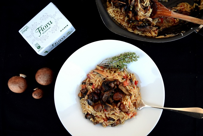 Η συνταγή αυτή είναι ιδανική για να την ετοιμάσεις στον vegetarian φίλο σου που συνήθως την βγάζει με σαλάτα στα γιορτινά τραπέζια. Ψάξε στην λαϊκή της γειτονιάς σου να βρεις άγρια μανιτάρια, που έχουν πολύ πιο πλούσια και γεμάτη γεύση από τα απλά λευκά μανιτάρια που βρίσκεις στα σουπερμάρκετ. Μπορείς επίσης να χρησιμοποιήσεις και άγρια αποξηραμένα μανιτάρια, που για να τα χρησιμοποιήσεις όμως θα πρέπει να τα έχεις μαλακώσει σε ζεστό νερό για καμιά ωρίτσα (μην πετάξεις το υγρό που μαλάκωσαν, θα το σουρώσεις πολύ καλά και θα το προσθέσεις στο ζωμό)!